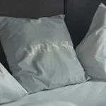 A bathroom comprises a walk-in shower, a separate toilet, and a bath. Bath sheets can also be found.